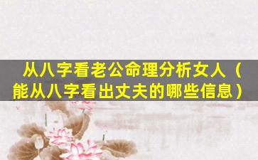 对于女性而言,通过八字可以判断其老公的命理情况以。下是一些常用 🌵 的八字命 🐝 理分 🍀 析方法: