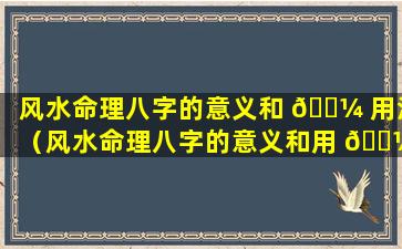 风 🐠 水 🌴 命理八字的意义和用 🐡 法视频