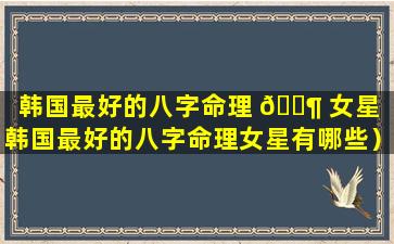 韩 🐵 国知名的八 🐈 字命理 🌺 女星: