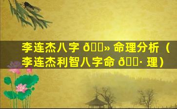 《李 🐴 连杰八字紫 🦢 微斗数解 🦉 析》(作者李:仕珍)