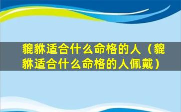 适合佩戴貔 🐠 貅的命 🌺 格: