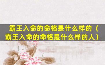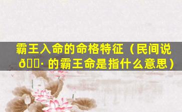 “霸王入命”一 🐘 般是指八字中一个或多个特殊格局和神煞的组合,据说可以体 🐬 现出一种强势霸、道、有威慑力的性格和运势。