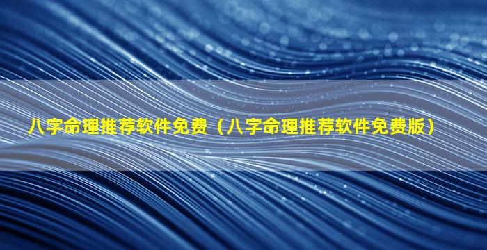 八字 🐵 命理免费软 🐳 件推荐