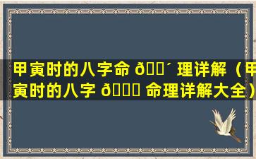 甲寅时(早上57点)八 🦢 字 🐧 命理详解