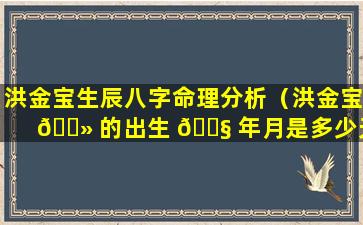 总体来看,洪,金,宝,八,字命理显示他是一个性格稳 🦉 重踏实事业运势不错财运亨通感情运势起伏较大的一个人。晚,年,运势较。好身体健康家 🌼 庭幸福