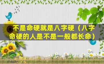 所谓“命硬”或“八字 🐳 硬”,是,一种民间迷信的说法认为人的命运由出生日期和时辰决定的。这,种说法。缺乏科学依据不能用来解释人的性格或遭遇