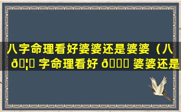 综合考虑“八字命理看好”和“婆”婆好二者 🕊 相互 🪴 关 🐴 联,但不能完全划等号。
