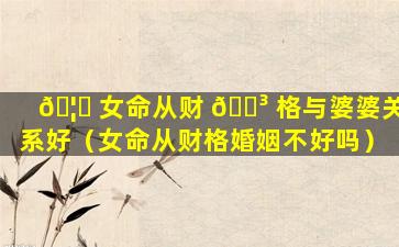 财星生助官星:婆婆对命主的事 🌲 业和财运有帮助命主,与婆婆,关系融洽常得到婆婆的扶持。