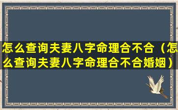 如何查询 🍀 夫妻 ☘ 八字命理合不合