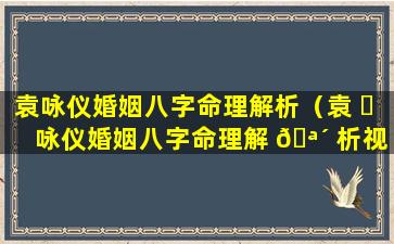 2023年袁 🌷 咏仪八字命理详解 🌷