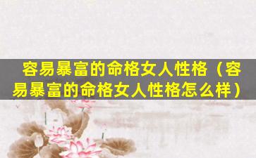 容易暴富的命格女性 🌴 性 🐎 格特质