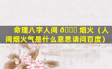 “命 🕷 理 🐋 八字人间烟火”意 🕸 指: