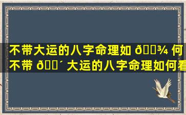 大运 🌾 流年如何影响八字命 🐦 局