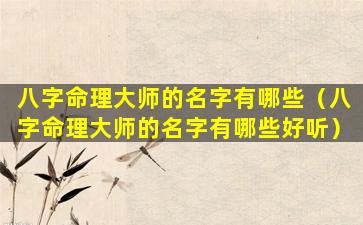 八字命理大师的名字有哪些(八字命理大师的名字 🕊 有哪些好听 🐵 )