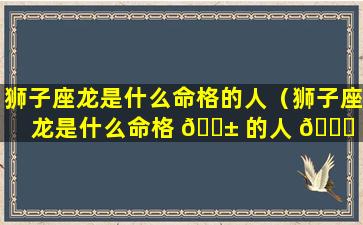 狮子座龙是中国十二生 🌷 肖和西式占星术结合的一种命格。