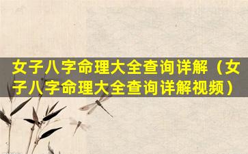 女 🦄 子八字命理解读大 🦅 全 🐕