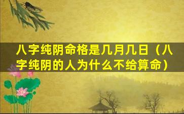 八字纯阴命 💮 格 🦍 不是以出生年月日来判断的,而是根 🐎 据八字中的五行属性来判断的。