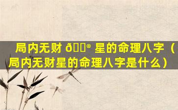局内 🐯 无财 🐅 星的命理八 🐴 字