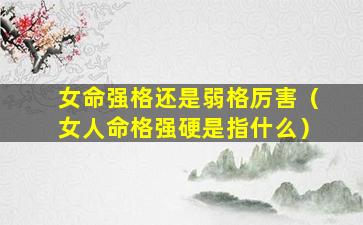 强格和弱格女 🍁 命各有特点,适合不同的生活方式和追求强格女命适合。独,立发展发挥自己的优势弱格 🐛 女命适合;依,附 🦢 。于他人享受家庭的温暖