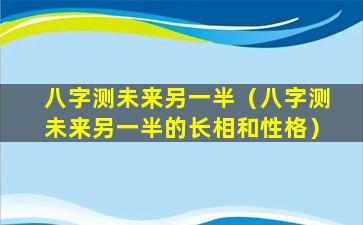 八字算命术中,可,以,通过分析一个人的八字命局来推测其未来另一半的长相和性格但这种预测仅供参考不能作为绝 🌸 对依据。