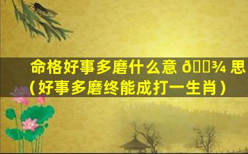 “命 🐞 格 🦆 好事多磨”的意思 🐅 是: