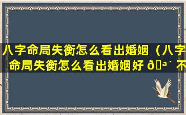 以下因素也会影响八字阴阳失衡的 🦊 人的 🌸 婚 🐅 姻运势: