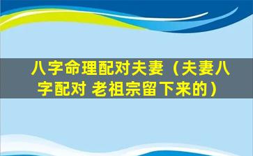 夫妻八字 🦋 配对:老祖宗留下 🦍 的传 🌵 统习俗