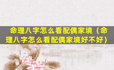 看配偶家境好坏的八字 🐒 命 🕷 理方法