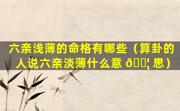 六亲 🐛 缘分浅薄是指与六亲(父母、兄、弟、姐妹配偶子女)的亲缘关系较淡薄 🍁 ,彼此之间的联系或感情不深厚。