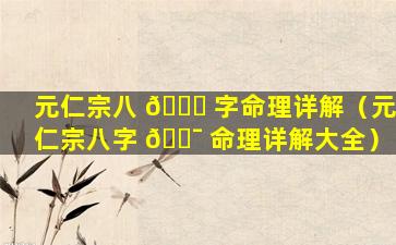 总 🐦 体 🐛 :元仁宗八字身强财旺,有,富,贵之相但受七杀克制 🌲 一生多磨难。