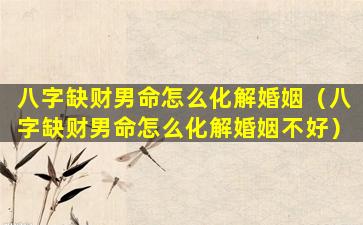 八字学说中并没有八字“缺 🐈 财男命”的说法,因此不存在针对该说法的婚姻化解方法。
