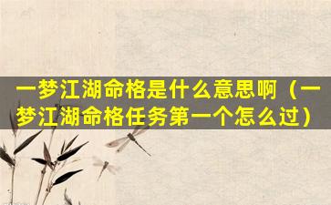 一梦江湖命格任务第一个 🕷 :金玉良缘