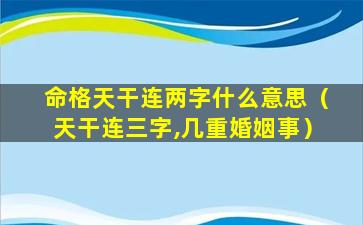 在四柱八字命理学中命,“格天干连两字”是,指一个人的八字命局 🐵 中 🌺 日柱的天干出现连续两个相同的相同的五行属性。