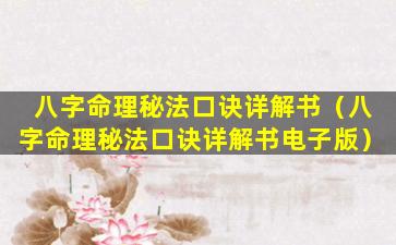 《八字命理 🐵 秘法口诀详解书》电 🌷 子版