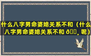 婆媳、翁婿关系 💐 紧张,难以和谐。
