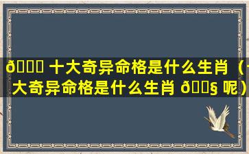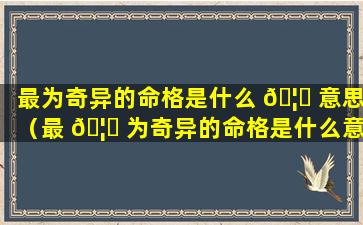 命格奇特对 🐺 运 🐕 势 🐋 的影响: