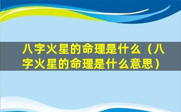 八字 🐞 火星的 🦍 命理 🐋 含义