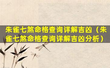 朱雀七煞命格查询详 🦅 解 🌲 吉凶图 🌹