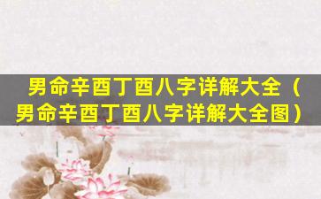 男命辛 🌴 酉丁酉八字详 🦈 解大全