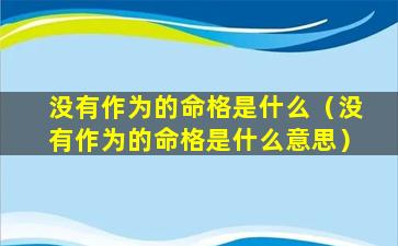 具体 🕸 来说,以下情况可能被认为是“没有作为的命格”: