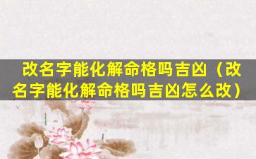 改 🐠 名字是否能化解命格吉凶 🌻