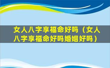 婚姻状况八字享福命的女人婚姻状况一般较好,但具体情况还需结合八字的其他因素分 🦄 析: