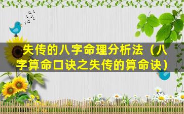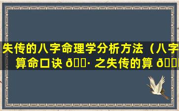 失传 🐡 的 🌷 八字命 🌺 理分析法