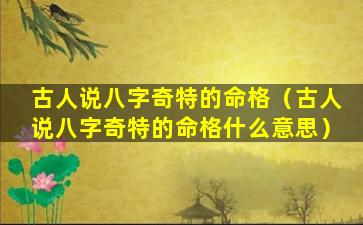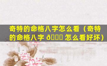 八字奇特 🐵 命格 🌾 的 🌹 说法
