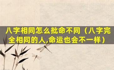 八字相同怎么批命不同(八字完全相同的人,命运也会不一样 🦄 )