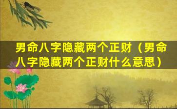 男命八字隐 🐋 藏 🦆 两 🐒 个正财的含义: