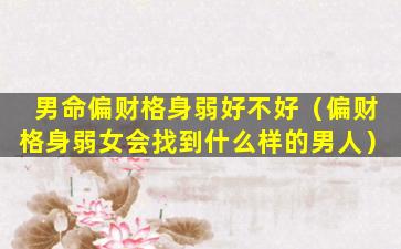 综合判断因此,男 🐘 ,命,偏财格身弱好不好需要根据八字中其他因 🦋 素的配 🦁 合而定具体如下: