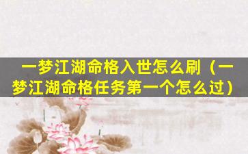 一梦江湖命格入世怎么刷(一梦江湖命格任务第一 💮 个怎么过)