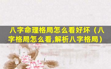 八 🐼 字命理格 🌷 局好坏的评判标准