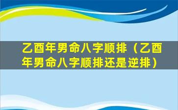 八字顺排:1、乙 🐡 酉年 🦟 :天干 🐦 乙木,地支酉金